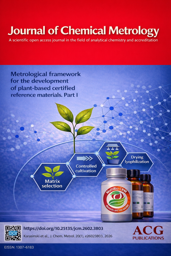 DOI http://doi.org/10.25135/jcm.2602.3803 Keywords Certified reference materials plant-based reference materials reference material production ISO 17034 ISO 33405 metrological traceability DETAILS PDF OF ARTICLE © 2026 ACG Publications. All rights reserved.
