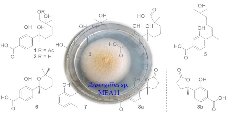 DOI http://doi.org/10.25135/rnp.383.2301.2666 Keywords Triterpenoid saponin Zornia diphylla Fabaceae cytotoxicity DETAILS PDF OF ARTICLE © 2023 ACG Publications. All rights reserved.15) Phenolic Bisabolanes from the Marine-Derived Fungus Aspergillus sp. MEA11